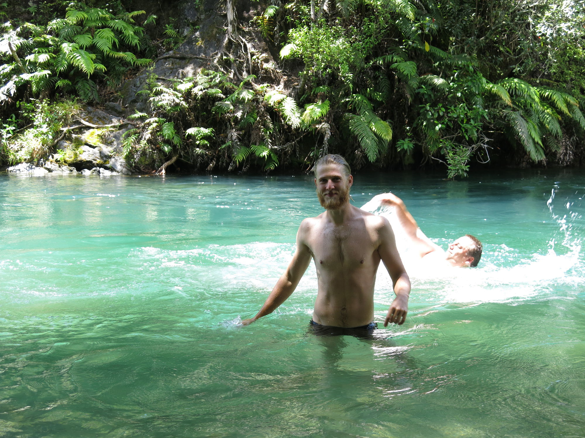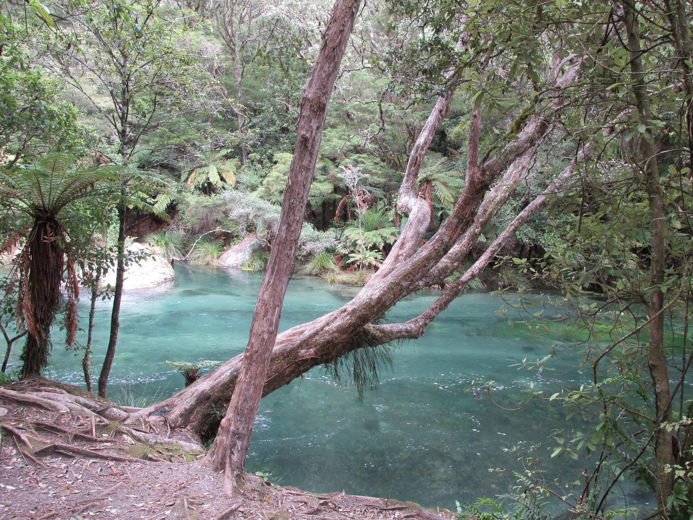 Die nächste Schlafmöglichkeit fand ich dann auf der Mangatutu Hot Springs campsite, so wie Rosie’s Bay auch eine kostenfreier Zeltplatz, nur diesmal nicht an einem See, sondern nahe an zwei Hot Pools, in die einfach heißes Wasser aus dem Fels geleitet wird. Seeehr warm, aber wenn man erstmal drin ist, zieeemlich angenehm (nur nicht den Kopf unter Wasser halten – Meningitisgefahr).