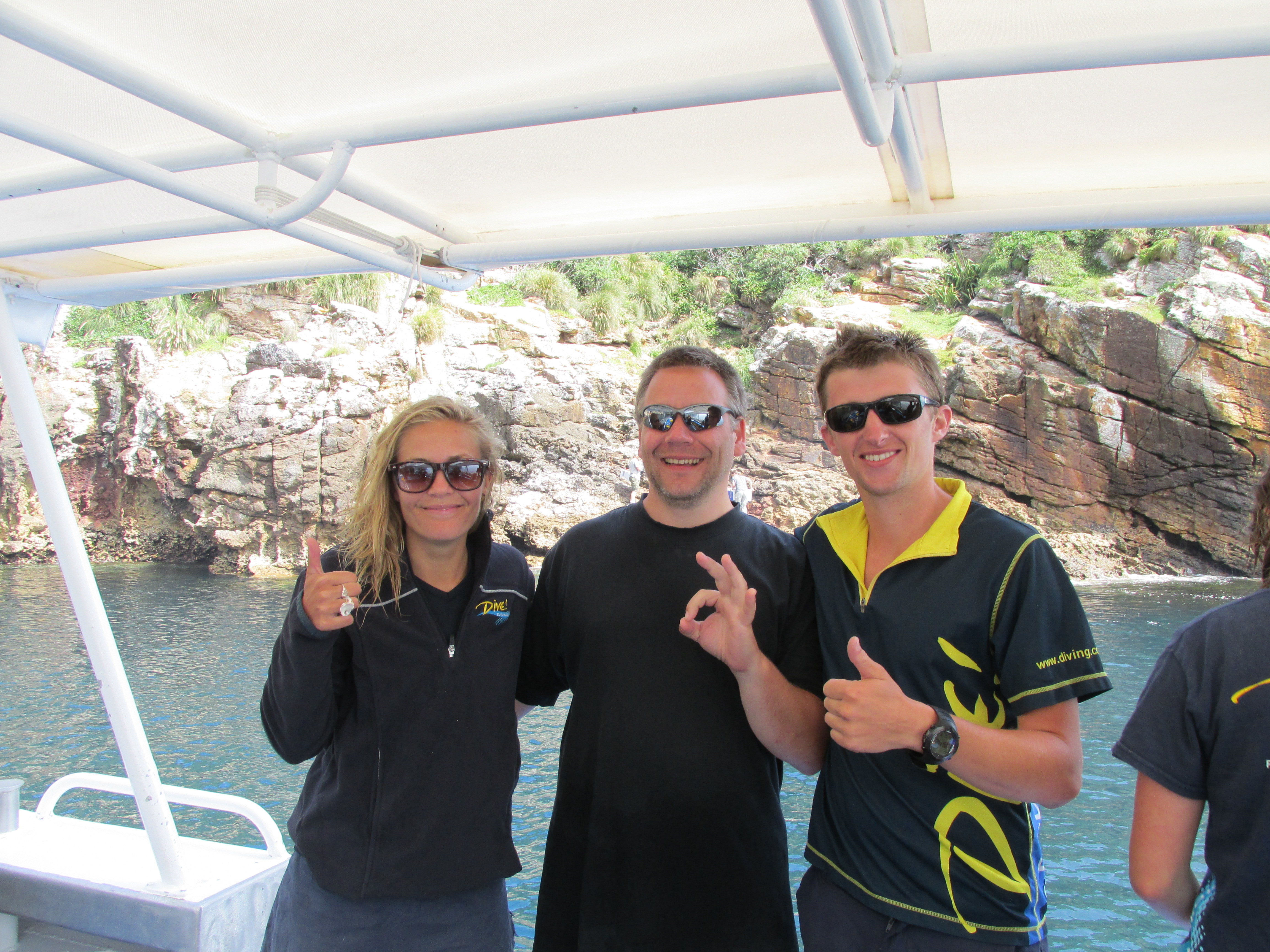 Tja, und da gibt es eigentlich gar nicht so viel zu erzählen. Der erste Praxistag fand mangels Pool am Strand statt (oh, wie schade :o), und mir wurde so einiges beigebracht, was ich meist auch direkt umsetzen konnte. Nur am Ende der fünf Lektionen, die eigentlich an mehreren Tagen stattfinden, war ich sehr ausgelaugt und brauchte für die letzten beiden Übungen zwei Anläufe. Am zweiten und dritten Tag ging es zu den Poor Knights, einem der Top-Tauchgebiete weltweit, um die letzten vier Tauchgänge mit Übungen und Prüfungen zu absolvieren – natürlich habe ich alles geschafft und bestanden. Leider habe ich keine Unterwasserfotos für Euch, das hätte sich wirklich gelohnt. So eine reiche Unterwasserwelt ist schon toll, verschiedene Rochen, Fischschwärme, Muränen, Schnecken, etc… kann man kaum aufzählen, muss man gesehen haben. Kommt halt selber mal vorbei 😉