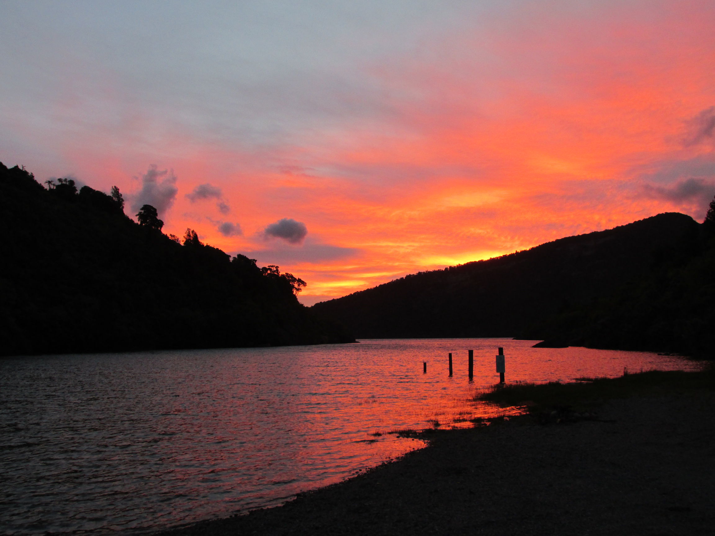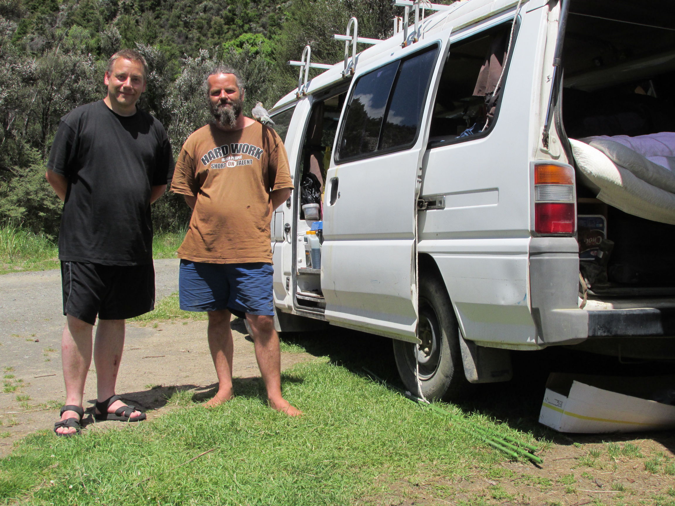Da die Campsite weit abgelegen, nicht so doll erreichbar und dazu noch kostenfrei ist, haben sich da drei Kiwis (nicht die Vögel) eingenistet, leben dort anscheinend von Stütze. Einer geht sogar auf die Jagd nach Hirschen, und ansonsten genießen die anscheinend einfach nur die Umgebung. Hat was. Ach, und einer der Vögel hatte auch noch ’nen Vogel, flugunfähig und zutraulich. Jedenfalls haben wir uns so gut unterhalten, dass ich am nächsten Tag erst nachmittags weiterkam.